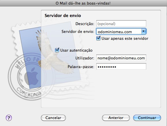 1 – Aceda ao cliente de email Apple no seu Mac e insira os dados da sua conta de email (endereço e senha associada).